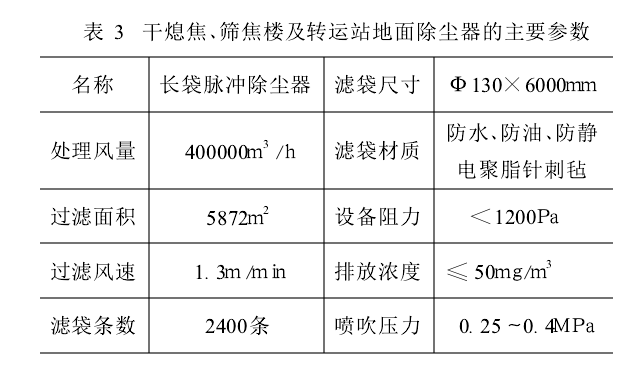 表3干熄焦、篩焦樓及轉(zhuǎn)運站地而除塵器的主要參數(shù)