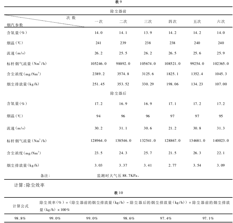 為了驗證我們的監(jiān)測方法可行,我們選了同樣爐型而且使用負壓布袋除塵器的進行監(jiān)測( 負壓布袋除塵器按_目前的監(jiān)測規(guī)范和方法能夠準確測出結果) ,下面是我們對烏海市益隆鐵合金有限責任公司 1#爐 12500KVA 半封閉硅鐵礦熱爐監(jiān)測數(shù)據(jù):
