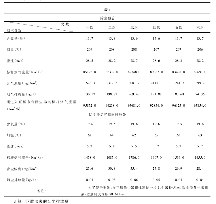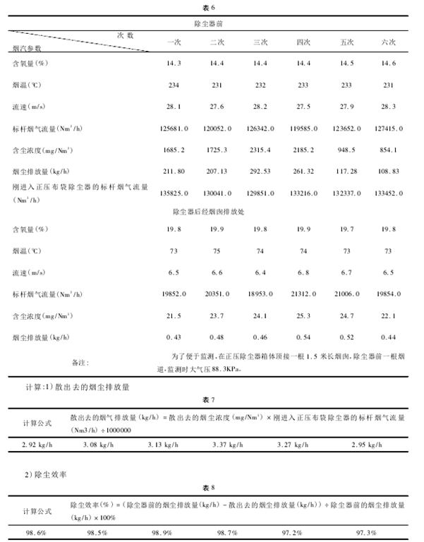 通過比較正壓布袋除塵器和負壓布袋除塵器的六組排放量,可以得出結論: 正壓布袋除塵器監(jiān)測和計算的結果與負壓布袋除塵器準確監(jiān)測結果基本相同,誤差很小,所以這種方法可行。