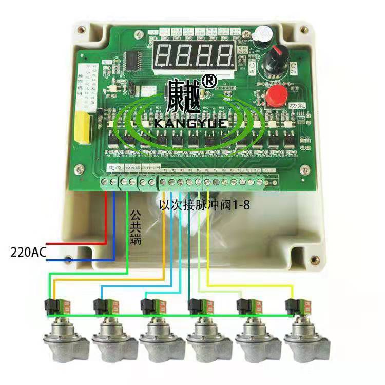 脈沖控制儀輸出一個(gè)電信號(hào)持續(xù)時(shí)間稱為脈沖寬度??刂苾x輸出連續(xù)兩個(gè)電信號(hào)之間的間隔時(shí)間稱為脈沖間隔。后一個(gè)脈沖到di一個(gè)脈沖之間的停止時(shí)間稱為循環(huán)間隔??刂苾x可以根據(jù)清灰要求,調(diào)整脈沖寬度和脈沖間隔,對(duì)除塵器進(jìn)行循序巡回定時(shí)清灰??刂苾x由高性能微處理器(CPU),控制集成電路,LED數(shù)碼顯示,光電隔離環(huán)節(jié),大功率晶體管驅(qū)動(dòng)等組成,工作穩(wěn)定可靠,KYM-ZC系列