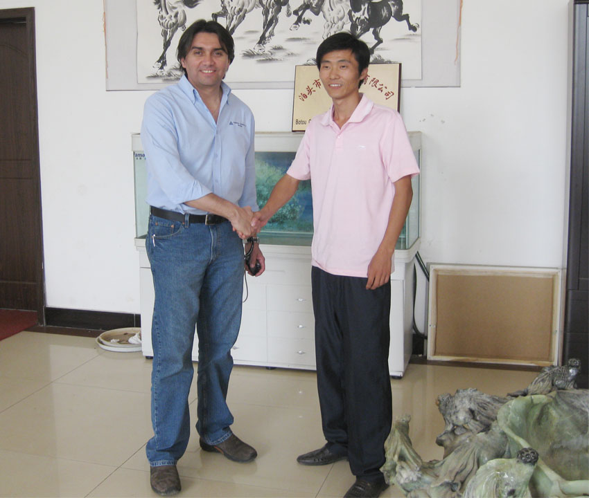 智利客戶在采購(gòu)除塵骨架及配套除塵布袋后,與康潔環(huán)保領(lǐng)導(dǎo)人合影留念,祝賀:合作成功。 |